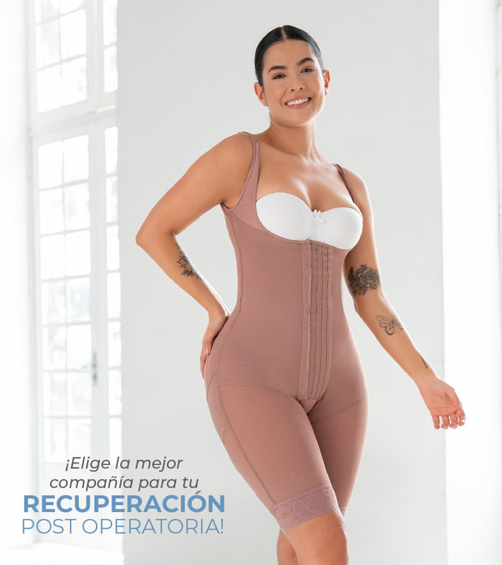Postquirúrgica - Tipo de control: Medio - Ref. FPP005 Faja medio muslo con brasier Faja con cubrimiento alto de espalda, cuenta con 3 broches en la parte frontal y control en abdomen,...